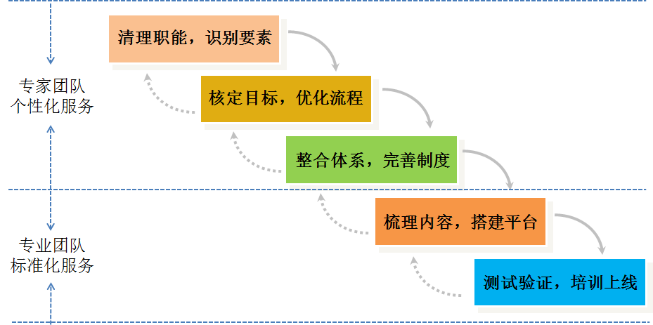 由于管控平台是一个庞大的系统,其依赖于企业建立一个科学完整严密有序的管理体系,因此产品实施主要由专家团队的个性化咨询服务与专业团队的标准化实施服务组成。